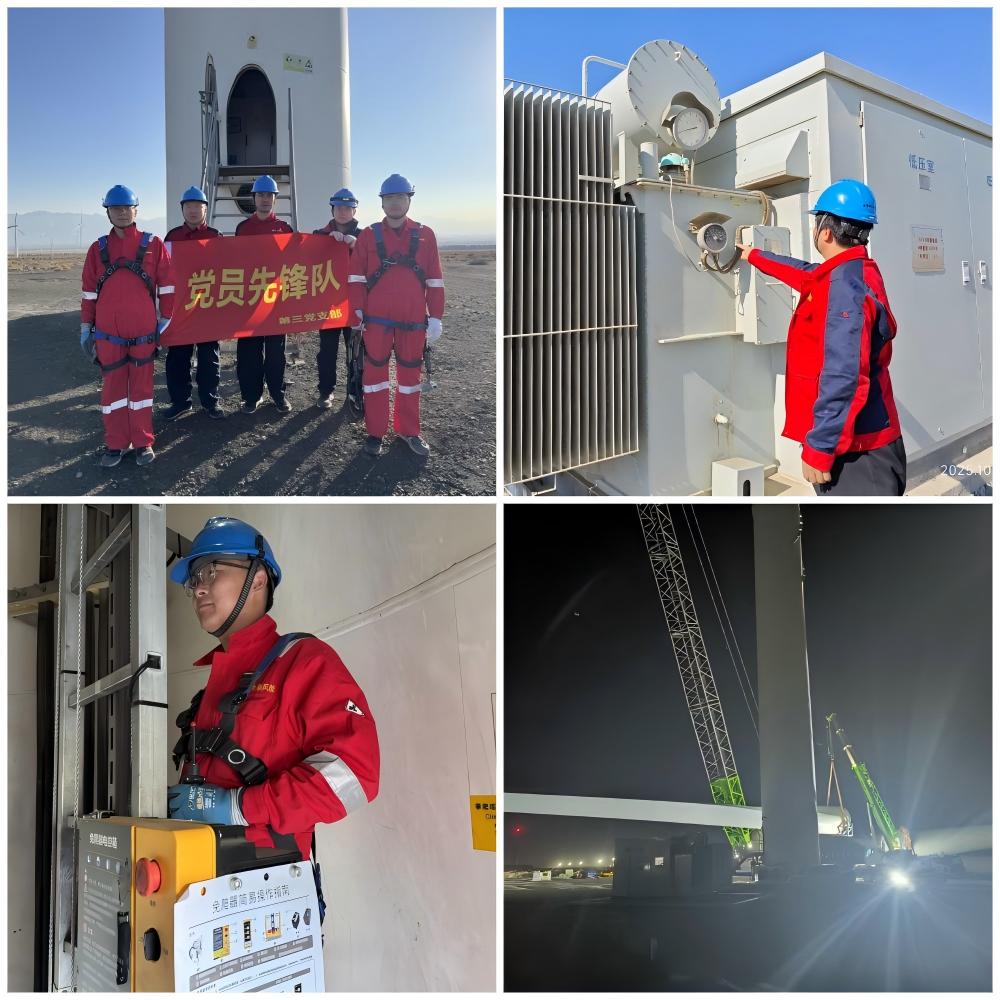 活動中,黨員突擊隊直奔工作現(xiàn)場,聚焦電力保障核心任務分片行動。在風機檢修區(qū)域,黨員技術骨干帶頭拆解故障部件,逐項排查電氣、機械等關鍵部位,憑借豐富經驗快速定位問題并完成修復,確保風機恢復穩(wěn)定運行;變電站內,黨員們按照巡檢清單,對站內設備進行全方位“體檢”,仔細記錄儀表數(shù)據(jù)、檢查設備溫升情況,不放過任何一處安全隱患;在風機吊裝作業(yè)現(xiàn)場,黨員監(jiān)督員全程堅守,確保每一個環(huán)節(jié)都符合安全標準,為吊裝作業(yè)保駕護航。